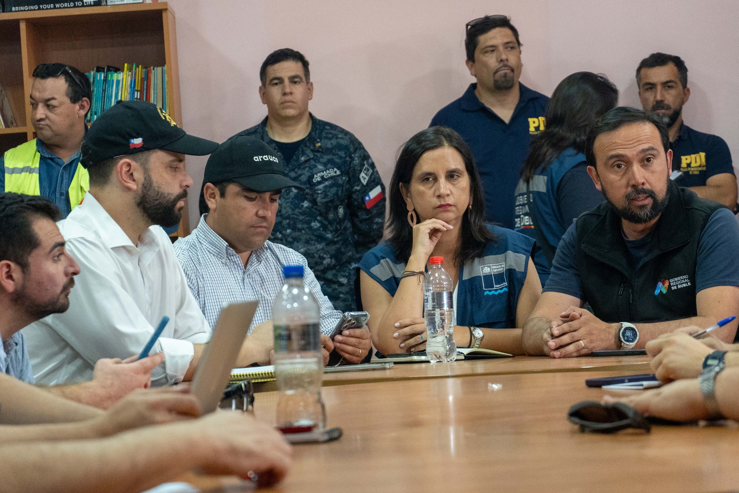 En esta reunión estuvo presente el alcalde, Juan Carlos Ramírez; la ministra de Agricultura, María Ignacia Fernández Gatica; el gobernador, Oscar Crisóstomo; el Delegado Presidencial de Itata, Mario Cruces; la Seremi de Desarrollo Social y Familia, Marta Carvajal Aguirre; además de representantes de Bomberos, CONAF, Arauco, Carabineros, PDI, el director de Seguridad Pública y funcionarios municipales, entre otros participantes.